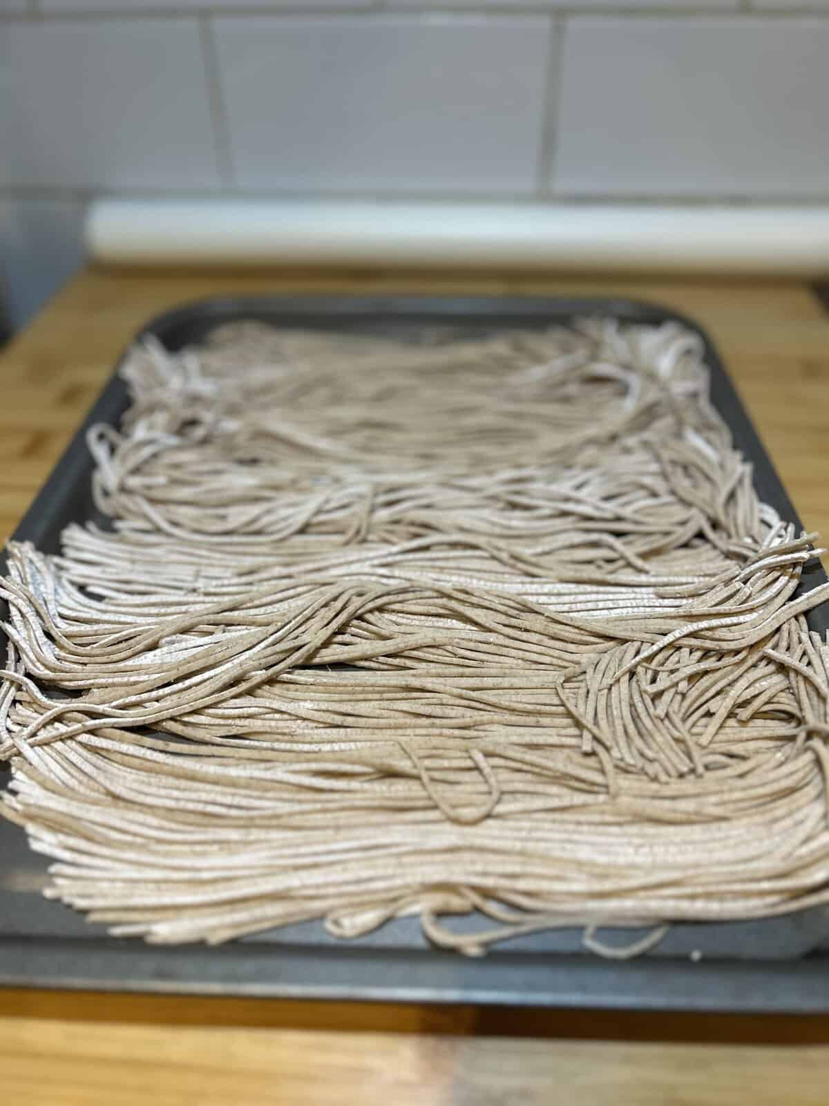 For soba, I used the spaghetti attachment (2mm), which creates the perfect thickness for these delicate noodles.