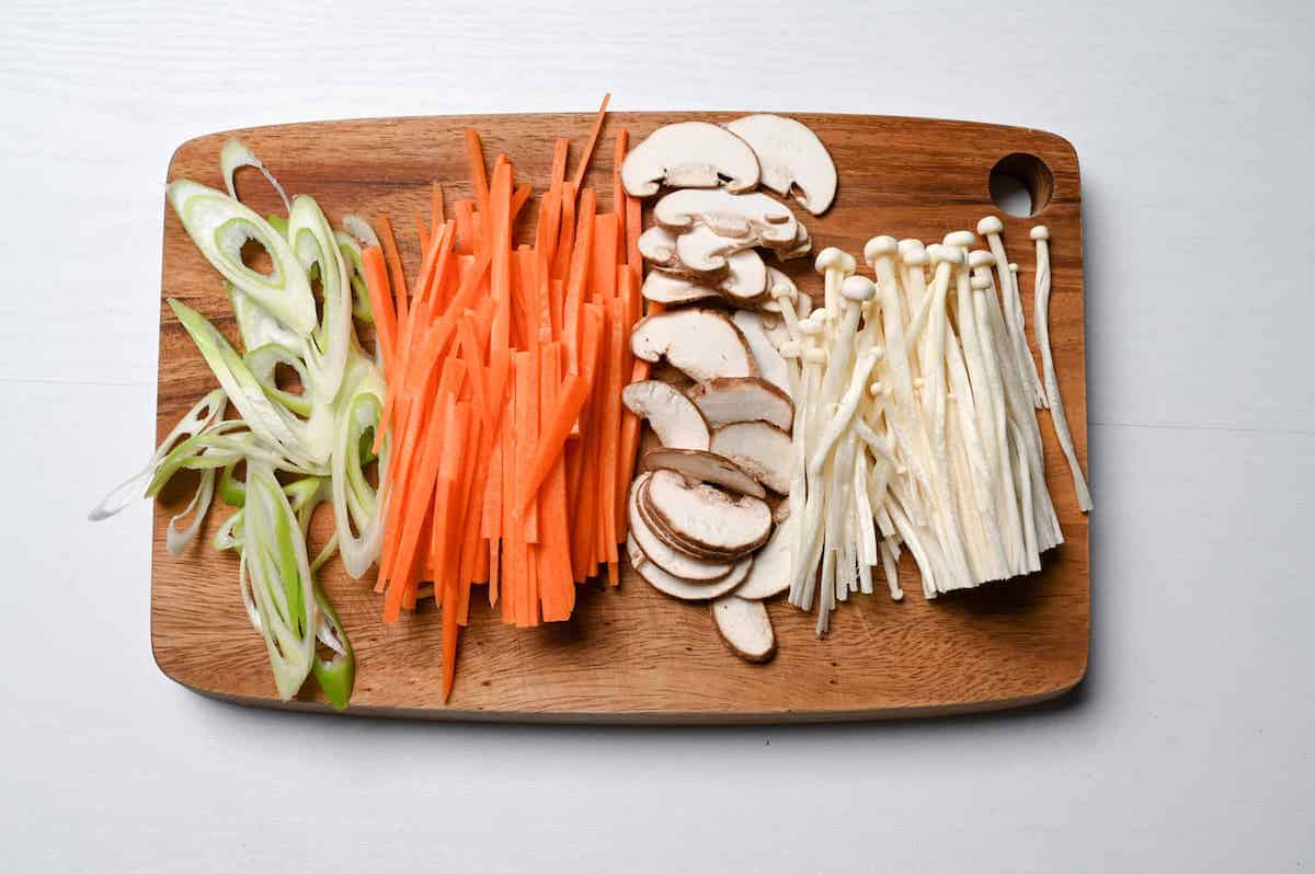- Mushroom of your choice: even though I used shiitake and enoki mushrooms for this recipe, you can literally use any mushroom you like.